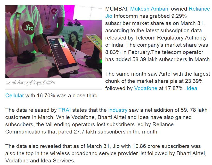 Lets face the facts, by saving RCom Mukesh was able to break the contracts with Anil Ambani on mere 500 crores. Now RCom has no other option than to go for bidding of it spectrum sale. Vodafone and Airtel, Indias largest mobile carrier, on the other hand continues to report losses. This makes India’s bleeding telecom sector to keep the auction prices very low allowing Jio to spend less on acquiring RCom’s Spectrum. It is a well known fact that RJio uses 1 lakh RCom towers.